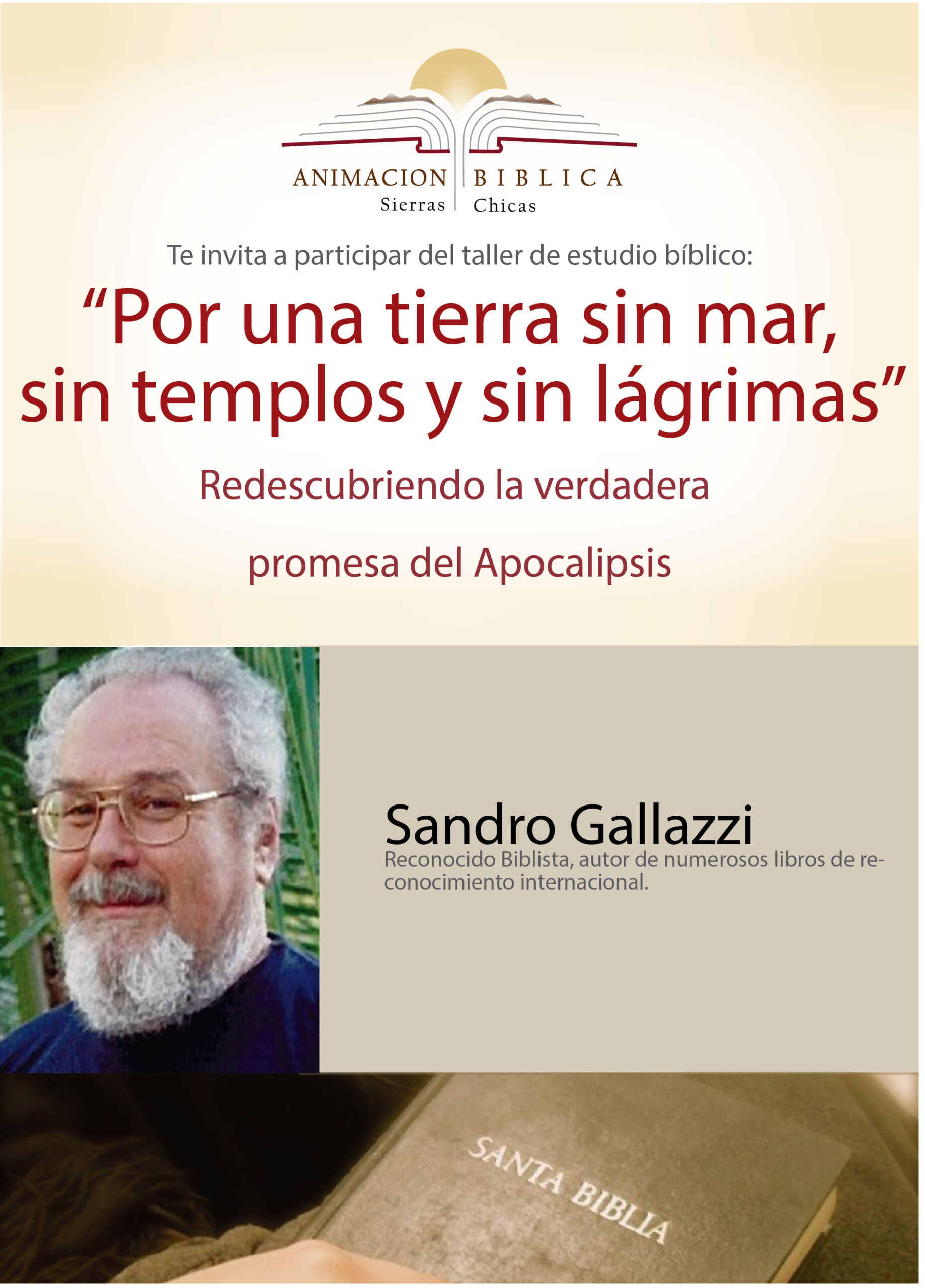 Por una tierra sin mar, sin templos y sin lagrimas. por Sandro Gallazzi | Ago 7, 2021 | Autor, Tema Taller «Por una tierra sin mar, sin templos y sin lágrimas». Redescrubriendo la verdadera promera del Apocalipsis. Dictado por: Sandro Gallazzi – Reconocido Biblista, autor de numerosos libros de reconocimiento internacional. Volver